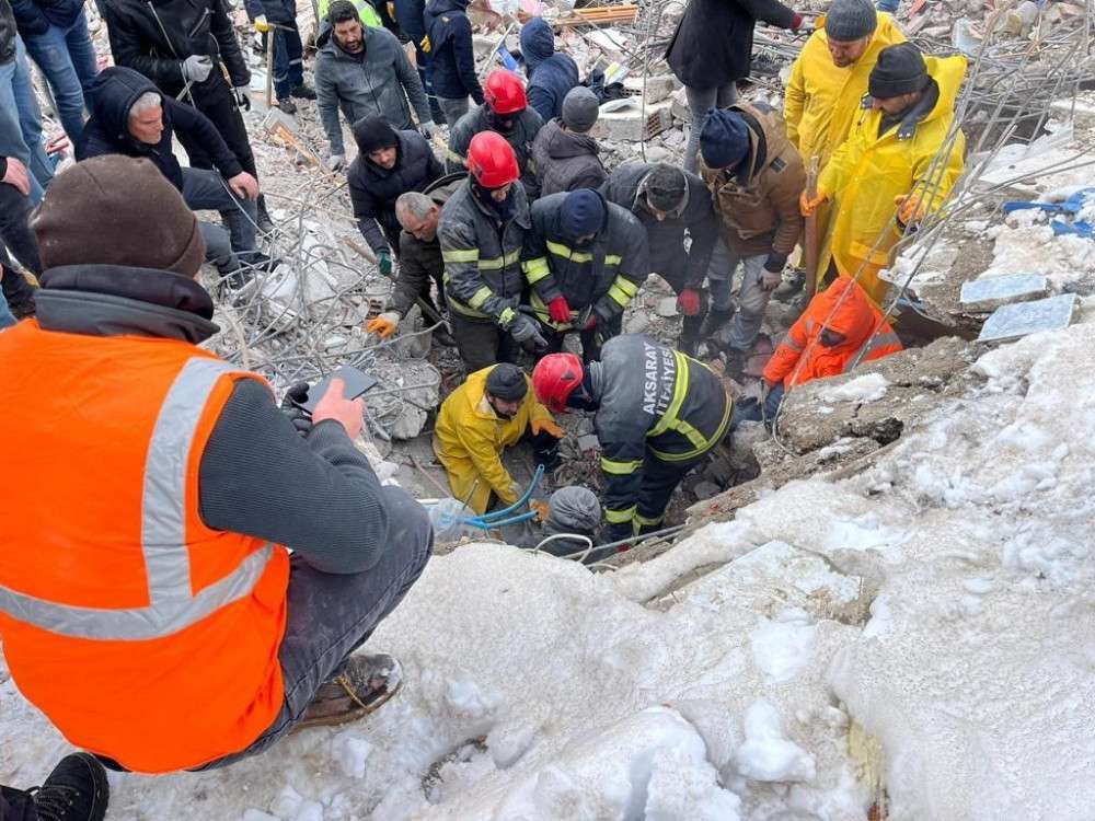 Belediye Başkanı Dr. Evren Dinçer’in de arama kurtarma ekiplerinin çalışmalarına katıldığı deprem bölgesinde gecenin ilerleyen saatlerine kadar soğuk hava şartlarına rağmen mücadele sürdürüldü. Enkaz altından çıkartılan 4 kişi en yakın sağlık kuruluşlarına ulaştırıldı. Aksaray Belediyesine ait iş makinaları ve ekipmanlar kullanılarak yapılan çalışmalardan güzel haberlerin gelmesi için umutlu bekleyişler sürüyor.