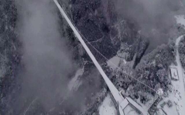 Çinʹin Hunan Eyaletinde bulunan dünyanın en yüksek cam tabanlı köprüsü, yağan karla muhteşem bir görüntü oluşturdu. Çinʹin Hunan Eyaletine bağlı Zhangjiajie şehrindeki Grand Kanyonʹda bulunan dünyanın en yüksek cam zeminli köprüsü ve çevresindeki arazi yoğun kar yağışı nedeniyle karla kaplandı. Çinʹin geleneksel mürekkep resim sanatıyla yapılmış siyah- beyaz resim çalışmalarını andıran manzarasıyla izleyenleri büyüleyen köprü, 3,4 milyon dolara mal olmuştu. Toplam uzunluğu 430 metre, genişliği 6 metre ve yerden yaklaşık 260 metre yükseklikte olan köprü 2016ʹda açılmıştı. Zhangjiajie şehrindeki Ulusal Orman Parkıʹnda iki dağ arasında uzanan köprü, bir seferde 800 ziyaretçiyi taşıyabilecek şekilde tasarlandı.(İHA)