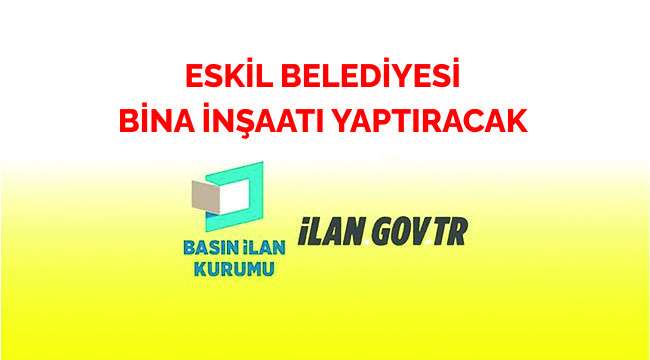 Basın İlan Kurumunun,www.ilan.gov.tr'deki ilanına göre Eskil Belediye Başkanlığı, Fen İşleri Müdürlüğü 4734 sayılı Kamu İhale Kanununun 19 uncu maddesine göre açık ihale usulü ile ihale edilecektir. İhaleye ilişkin ayrıntılı bilgiler için TIKLAYINIZ