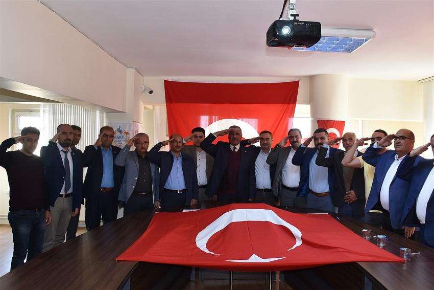 Ülkemizin güney sınırında oluşturulmaya çalışılan terör koridorunu yok etmek, bölgeye barış ve huzur getirmek amacıyla Türk Silahlı Kuvvetlerince (TSK) başlatılan Barış Pınarı Harekatı'na destek vermek amacıyla, Eskil Belediye Meclisi özel gündem çağrısıyla olağanüstü toplandı.
