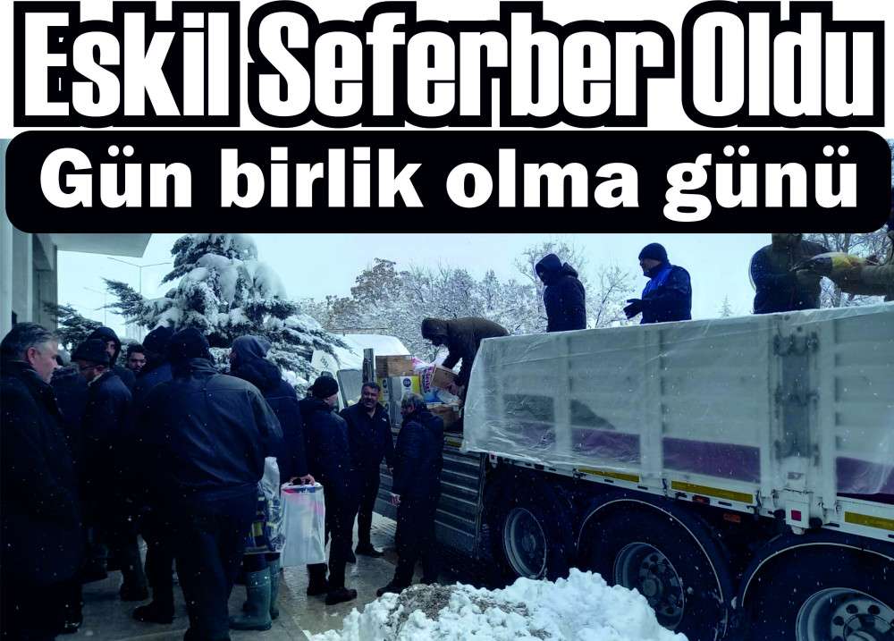 Eskil Belediyesi tarafından başlatılan yardım kampanyasının açıklanmasının ardından saatler içerisinde iki tır dolusu yardım malzemesi, olumsuz hava koşullarına rağmen doldurularak deprem bölgesine gönderildi. Şiddetli kar yağışı ve soğuğa rağmen yardımda adeta yarışan Eskilliler’in yardımları tüm hızıyla devam ediyor. Eskil’de bugüne kadar toplamda 10 tır gönderilirken, Eskil’e gelen 15 depremzede aile evlere yerleştirildi.