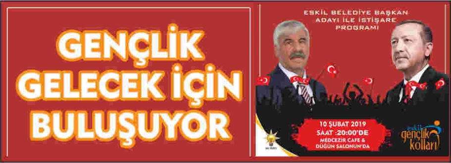 Eskilli gençler Ak Parti Eskil Belediye başkan adayı Necati Belgemen’le Eskil’in geleceği için buluşuyor.