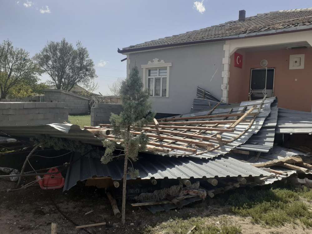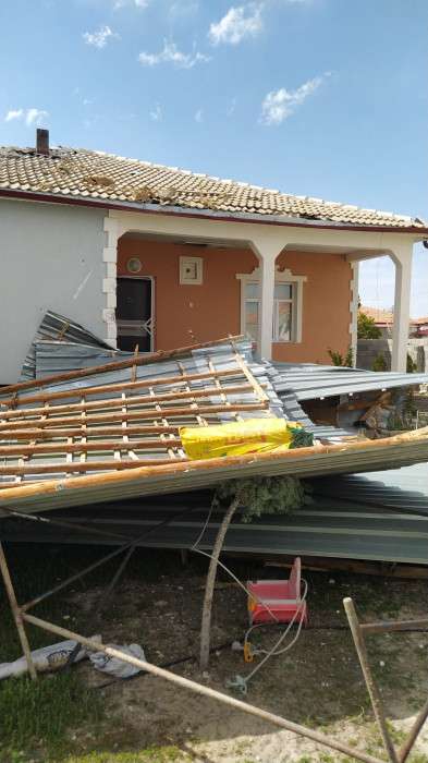 Eskil'de meydana gelen hortumda Mahmut Karakaya'ya ait açık besinin çatısı komşu bahçesine uçtu