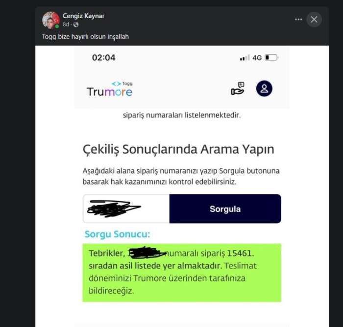 Türkiye'nin otomobili TOGG için başvurular tamamlanmıştı. Tamamlanan başvuruların ardından kura çekimi yapıldı. Eskil'den de bir çok kişinin başvuru yaptığı kurada Cengiz Kaynar isimli Eskilli şahıs asıl olarak kuradan çıktı.