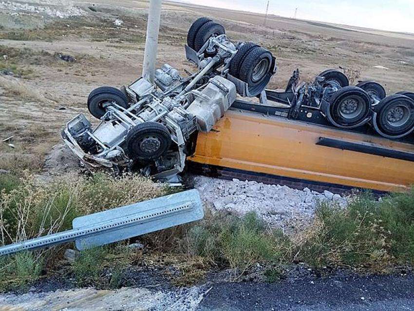 Edinilen Bilgiye göre Mahmut Y.(35) İdaresindeki hafriyat kamyonu, sürücüsünün direksiyon hakimiyetini kaybetmesi sonucu kontrolden çıkarak şarampole devrildi.