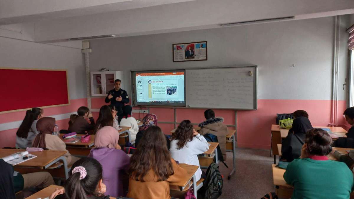 Eskil İlçe Emniyet Müdürlüğü görevli personeller tarafından Eskil Atatürk Anadolu Lisesi öğrencilerine meslek tanıtım etkinliği ve trafik eğitimi gerçekleştirildi. Programa Eskil Emniyet Müdürlüğü trafik ekipleri katıldı.