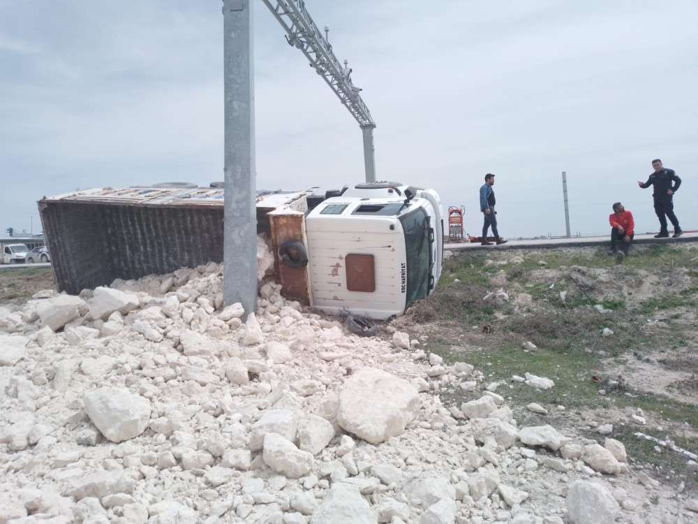 Eskil'de bir inşaatın molozlarını taşıyan özel bir firmaya ait kamyon sürücüsünün direksiyon hakimiyetini kaybetmesi sonucu devrildi. Kaza Sanayi yakınlarında saat 1