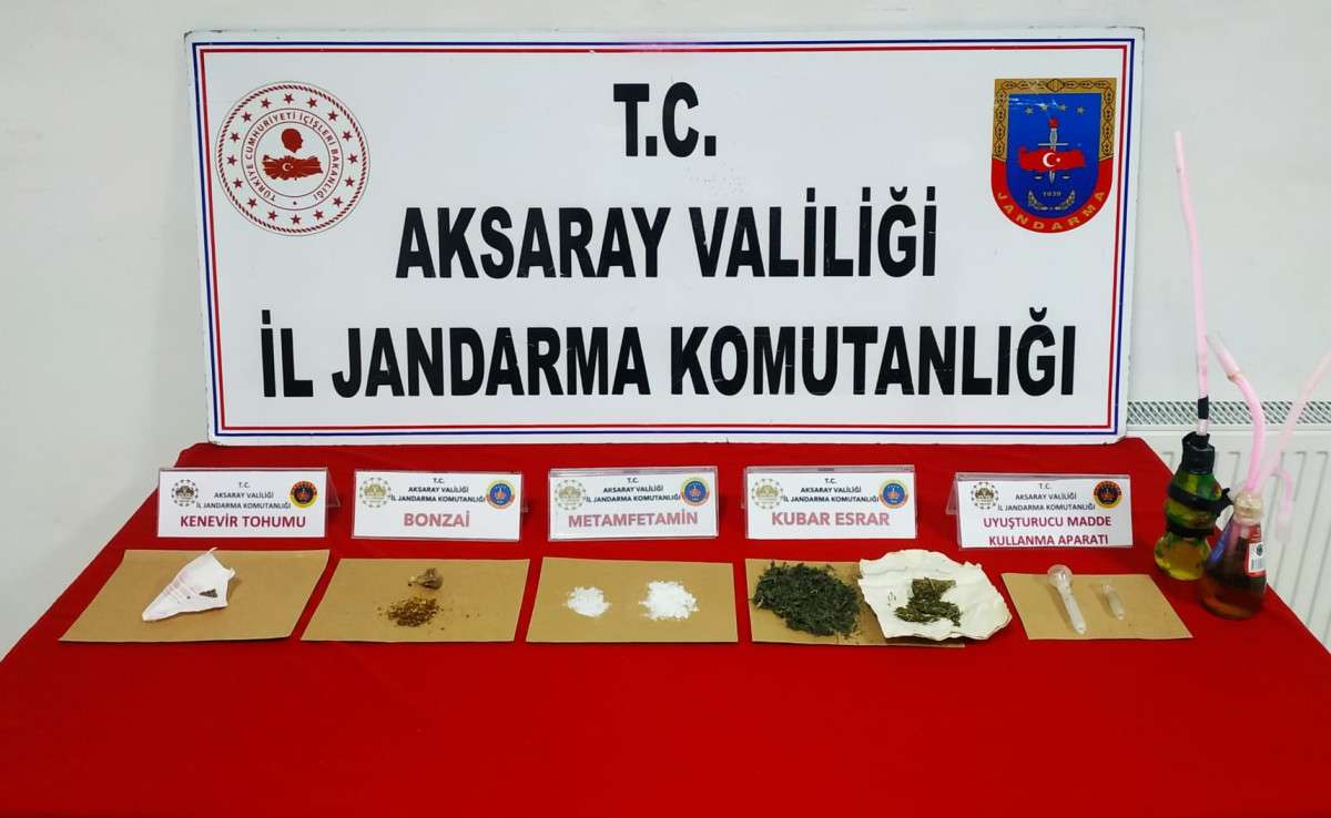 Aksaray İl Jandarma ekipleri tarafından düzenlenen operasyonda çok sayıda uyuşturucu madde ele geçirildi. Konuyla ilgili yapılan yazılı açıklamada,”Aksaray İl Jandarma Komutanlığı sorumluluk bölgesinde uyuşturucu madde kullanan, bulunduran, imal ve ticaretini yapan şahıs/şahısların yakalanarak adli mercilere teslim edilmesine yönelik kapsamlı çalışmalarımıza aralıksız devam edilmektedir. Bu kapsamda; Aksaray Cumhuriyet Başsavcılığının talimatları doğrultusunda, Aksaray İl Jandarma Komutanlığına bağlı İstihbarat Şube Müdürlüğü ve Merkez İlçe Jandarma Komutanlığı ekiplerince Uyuşturucu veya Uyarıcı Madde Kullanan, Bulunduran ve Ticaretini yapan şahıs veya şahıslara yönelik yapılan istihbari çalışmalar neticesinde, Merkez İlçe mülki sınırları içerisinde (5) şahsın uyuşturucu veya uyarıcı madde kullandığı ve bulundurduğu tespit edilmesi üzerine, şahısların bulunduğu adrese düzenlenen operasyon sonucunda; (10) gram metamfetamin, (20) gram kubar esrar, (5) gram sentetik cannobinoid bonzai, (4) adet Uyuşturucu Kullanma Aparatı ele geçirilmiştir. Şüpheli şahıslar gözaltına alınarak, işlemlerinin tamamlanmasına müteakip adli makamlara sevk edilmiştir. Vatandaşlarımızı zehirlemek isteyen zehir tacirlerine karşı titiz ve gayretli çalışmalarımıza gece gündüz demeden aralıksız devam edilecektir”denildi.
