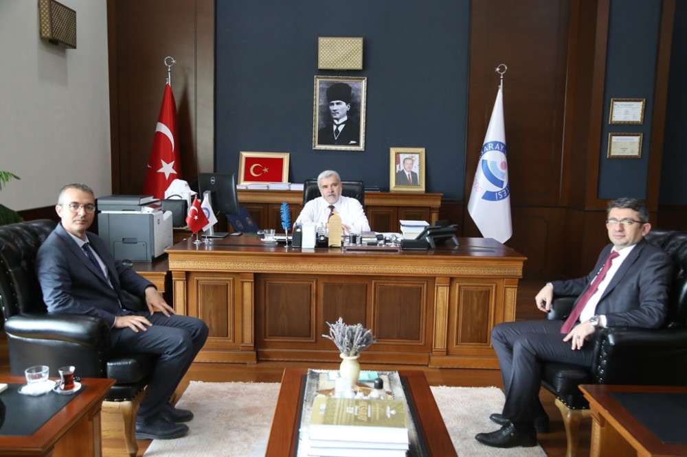 Aksaray İl Sağlık Müdürü Dr. Abdullah Güleç, Rektör Şahin’e nezaket ziyaretinde bulundu. Kısa süre önce Aksaray’a atanan ve görevine başlayan Güleç’e başarı dileklerini ileten Rektör Şahin, şehrin sağlık hizmetlerine pozitif katkı sunmak adına, mümkün olan tüm iş birliklerini kurmaya ve geliştirmeye hazır olduklarını söyledi. Kampüste yürütülen sağlık eğitimlerine de vurgu yapan Rektör Şahin, “Sağlık eğitimlerine ilişkin zincirin tüm halkaları tamamlandı. Akademik bakımdan yaşanan gelişmeleri titizlikle takip ediyoruz. İnşallah en kısa süre içinde Diş Hekimliği Fakültemiz de aktif biçimde hizmete girecek” dedi.